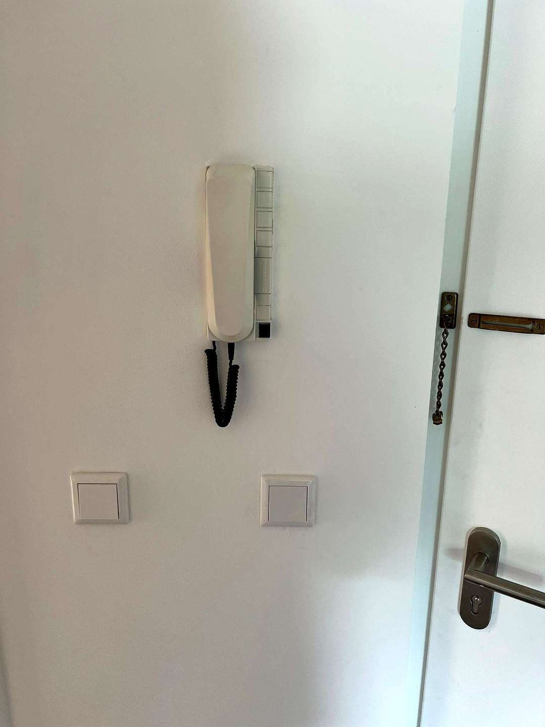 Für zusätzlichen Komfort und Sicherheit sorgt eine Klingelanlage mit Gegensprecheinrichtung sowie eine Wohnungseingangstür mit Türspion.
