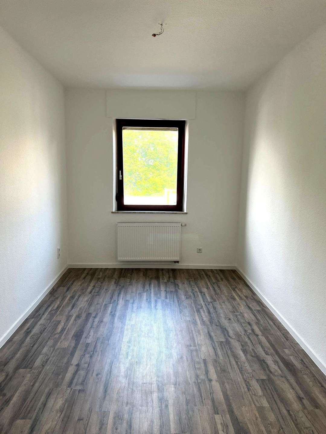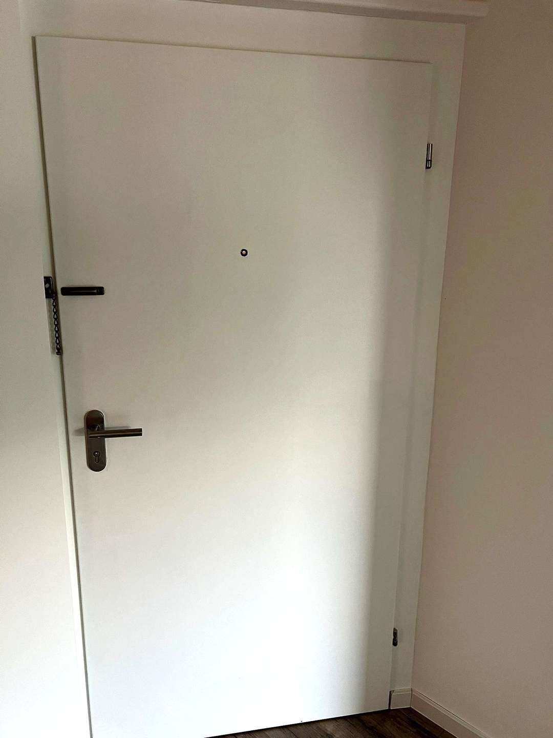 Die Wohnung ist mit weißen Türen ausgestattet. In der Küche wurde ein weißer Fliesenspiegel verbaut – ideal vorbereitet für Ihre individuelle Küchengestaltung.